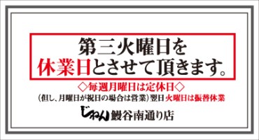2月の休業日のお知らせ